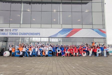 Волонтеры колледжа провели массовый флэш моб на чемпионате Европы по настольному теннису, который проходит в эти дни в ЭКСПО – центре г.Екатеринбург.
