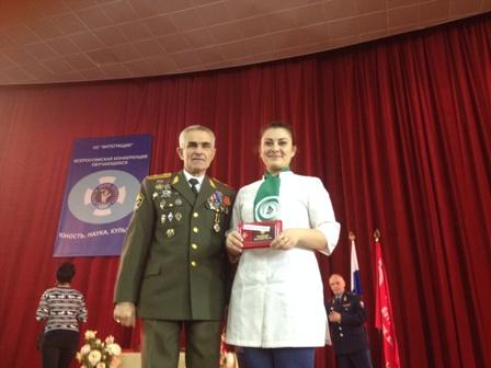На конференцию была приглашена студентка 4 курса ГБОУ СПО «СОМК» Нагиева Кристина Эхтибаровна, ставшая Лауреатом заочного конкурса «ЮНОСТЬ, НАУКА, КУЛЬТУРА», вместе со своим руководителем – Курбатовой Ириной Михайловной. Кристина представляла работу «Медико-социальное значение профилактики инсульта».
