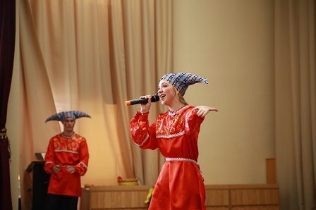 На открытии масленичной программы заместитель директора колледжа по воспитательной и социальной политике колледжа Антон Киселев рассказал ребятам об истории праздника. И пригласил их на концерт в стиле фьюжн: на сцене исполнили и «Калинку-Малинку», и современные номера. Исполнители в стилизованных народных костюмах пели и плясали, ведущие то и дело спускались со сцены в зрительный зал и устраивали конкурсы. Например, хороводы на скорость. Ребята в зале разделились на две команды, опоясали хороводами по половине зала и закружили хороводы на скорость.