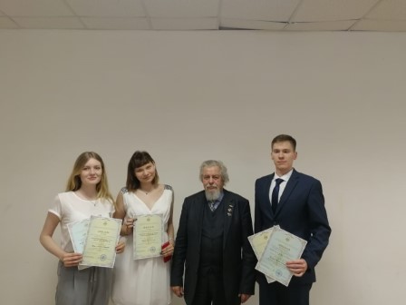 Студенты Демиденко Владимир, Двинских Елена и председатель Демиденко Евгений Алексеевич получили медали "За лучшую научную студенческую работу "