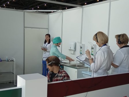 В качестве эксперта на VII Национальном чемпионате «Молодые профессионалы» (WorldSkills Russia) работала Голышева Наталья Геннадьевна, преподаватель профессиональных модулей СОМКа: «Впечатление об участниках сложилось очень хорошее, на площадках присутствовал дух соперничества. Уровень подготовки всех участников достаточно высокий. В отборочных соревнованиях участвовали 15 регионов, по итогам было отобрано четыре сильнейших участника, один представитель Татарстана прошел по квоте. Соперниками Светланы были представители Татарстана, Мурманска, Сургута. Задания были сложные, школьникам/первокурсникам за короткое время нужно было выполнить большой объём манипуляций. Конкурсанты обучали пациентов правилам пользования шприц-ручкой, уходу за стомой, помогали перемещаться больным с помощью средств реабилитации – трости, роллаторов - ходунков, демонстрировали знания о диетах при сахарном диабете и сердечно-сосудистых заболеваниях, бронхиальной астмы. Правила соревнований были очень жесткими. Баллы снижались за разного рода нарушения: техники безопасности при работе с пациентом, инфекционной безопасности, эргономических правил работы и низкие коммуникативные навыки.