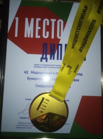 Золотая медаль в компетенции «Медицинский и социальный уход» VII Национального чемпионата «Молодые профессионалы» (WorldSkills Russia)