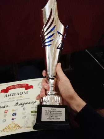 Демиденко Владимир студент 2 курса специальности "Медицинский массаж " занял 2 место в VIII Открытом чемпионате Волго-вятского района по массажу в номинации "Добрые руки ", проходившем в г. Киров. Конкурентами были участники  из Санкт-Петербурга, Нижнего  Новгорода, Тюмени, Кирова и других городов Российской Федерации.
