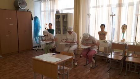 12 участников, представители всех территорий ГБПОУ «СОМК», выполняли конкурсные задания модулей С и Е в 2-х зонах: зона 1 – уход в дневном стационаре, зона 2 – уход в домашних условиях.