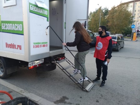 10 сентября 2021 года у ТЦ "Кировский" (Сиреневый бульвар) студенты головного учреждения ГБПОУ СОМК групп 297МС и 298МС совместно с куратором, в рамках межведомственного проекта "ВМЕСТЕ", возобновили в новом учебном году волонтерское сопровождение работы мобильного пункта экспресс- тестирования на ВИЧ. Они доносили до горожан информацию о профилактике ВИЧ-инфекции, распространяли соответствующую печатную продукцию и приглашали пройти экспресс-тестирование. В адрес волонтеров звучал многочисленные слова благодарности за работу от граждан и сотрудников пункта экспресс-тестирования.