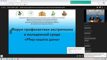 17 декабря прошли сразу шесть Онлайн-форумов профилактики экстремизма в молодежной среде «Мир нашего дома» Восточного, Западного, Северного, Южного, Горнозаводского управленческих округов Свердловской области и Екатеринбурга.