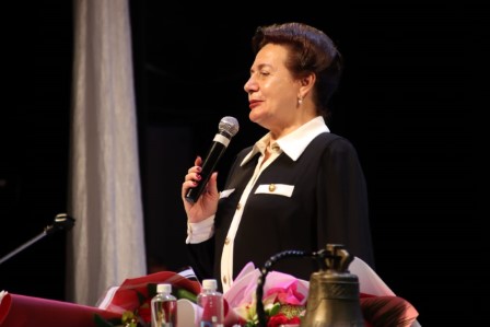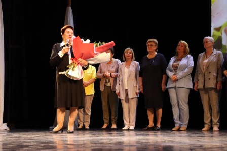 Под громкие аплодисменты на сцене чествовали 89 сотрудников, чей стаж работы в колледже превысил рубеж в 10, 15, 20, 25 и даже 55 лет! С особым удовольствием коллектив поздравил Ирину Анатольевну Левину с четвертьвековым пребыванием на посту директора. За это время медицинский колледж превратился в яркое созвездие, где с любовью и добротой обучают самой гуманной профессии в мире – профессии медика и спасателя.