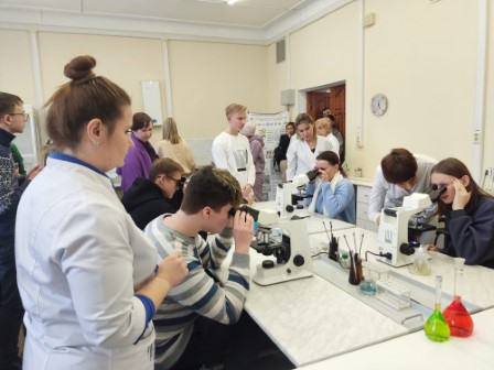 Для школьников и их родителей провели мастер-классы по сердечно-легочной реанимации, правильной гигиене полости рта, показали мир клеточных элементов под микроскопом, продемонстрировали принципы сборки и выправки очков. Можно было попрактиковаться в сестринском уходе, поставив инъекции манекену, посмотреть на способы пеленания новорожденных и современные инструменты, используемые в акушерстве.
