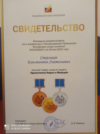 Преподаватель кафедры общеобразовательных дисциплин награжден медалью «Просветители Кирилл и Мефодий»