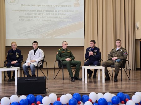 Ценным опытом для молодёжи стал открытый разговор с теми, кто ещё недавно выполнял воинский долг на СВО или участвовал в гуманитарных миссиях. Со сцены выступили член Общественной палаты, участник СВО Кирилл Мелехов, фельдшер группы медицинской эвакуации Арсений Кисляков, руководитель Центра патриотического воспитания СОМК Евгения Миронович и участник контртеррористической операции на территории Курской области Семён Першин. Искренний диалог, длившийся почти полтора часа, захватил собравшихся в актовом зале. Ребята задавали вдумчивые и серьезные вопросы гостям. С особым вниманием студенты слушали рассказ выпускника СОМК Арсения Кислякова о медицинской службе в зоне боевых действий. По зову сердца молодой человек прервал обучение в медуниверситете и отправился на специальную военную операцию. Хотелось помогать, спасать жизни. Именно это и дала ему медицинская служба в рядах Вооруженных Сил России.