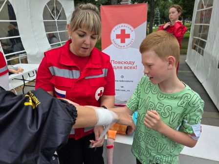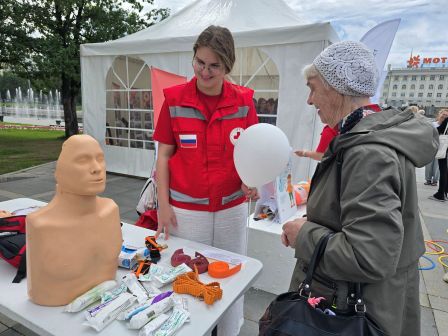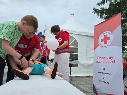 Одной из точек притяжения стал шатер Российского Красного Креста и Свердловского областного медицинского колледжа. Здесь инструкторы РКК проводили для уральцев обучение азам первой помощи. Участниками стали более ста человек, особенно понравился детям адаптированный для их возраста мастер-класс с куклой "Коленька научит". Также психологи семейного центра РКК организовали для 150 маленьких гостей занятие по изготовлению объёмных открыток с Белым цветком. Самым любознательным преподаватели СОМК рассказали про специальность медицинской сестры и дали возможность потренироваться в постановке внутримышечных инъекций.